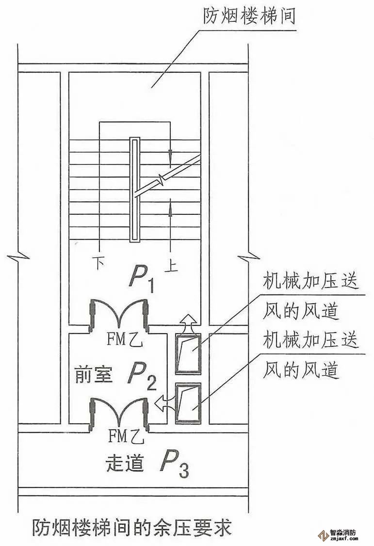 2.樓梯間與走道之間的余壓差應為40Pa?50Pa;