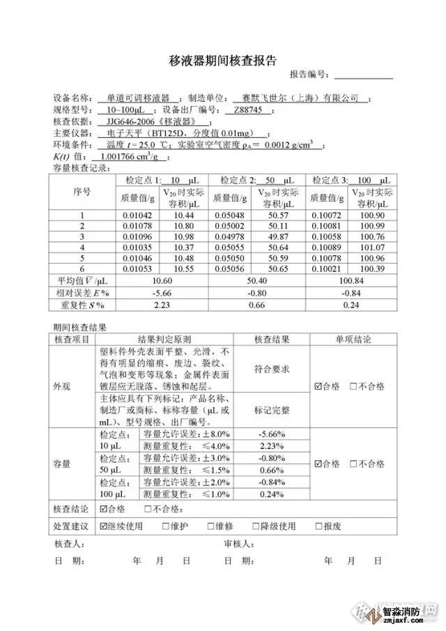 附上一份最近的單道可調(diào)移液器期間核查報(bào)告,供參考。