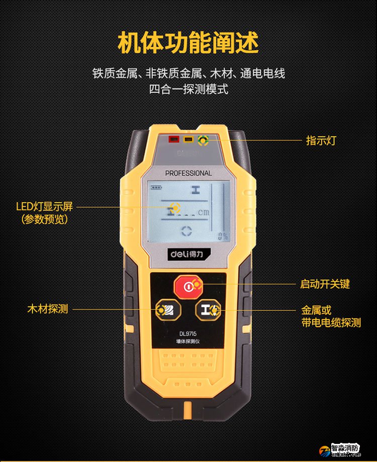 得力--墻內(nèi)電線(xiàn)探測(cè)儀 多功能墻體鋼筋掃描儀 金