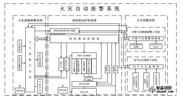 (3)控制中心報警系統:由消防控制室的聯動控制設備、圖形顯示裝置、集中報警控制器、區域(火災) 報警控制器和火災探測器等組成的功能復雜的系統。
