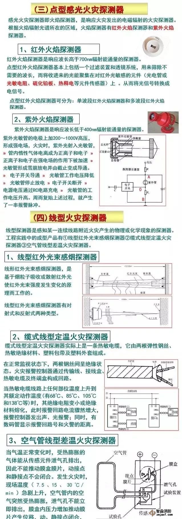 2)對火災發展迅速,可產生大量熱,煙和火焰輻射場所,可選擇感溫探測器,感煙探測器,火焰探測器或其組合。