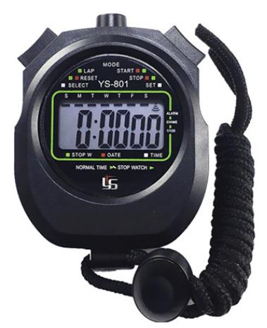 秒表主要有機械秒表和電子表等2類,電子秒表主要為三按鍵和四按鍵2大類。現在,使用最為廣泛的是電子秒表,機械秒表使用已很少見。目前,國產電子秒表一般是利用石英振蕩器的振蕩頻率作為時間基準,采用6位液晶數字顯示時間,具有顯示直觀、讀取方便、功能多等優點,如圖1-1所示。