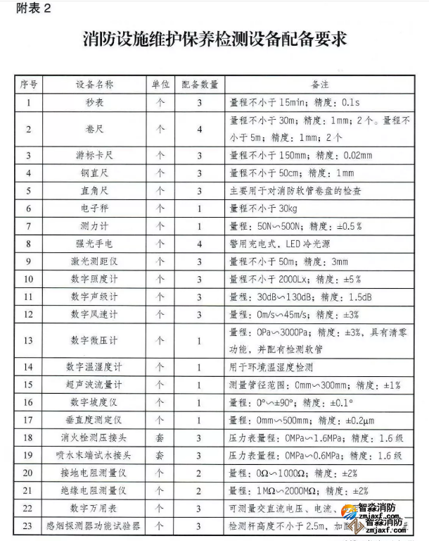 消防設(shè)施維護(hù)保養(yǎng)檢測設(shè)備配備要求