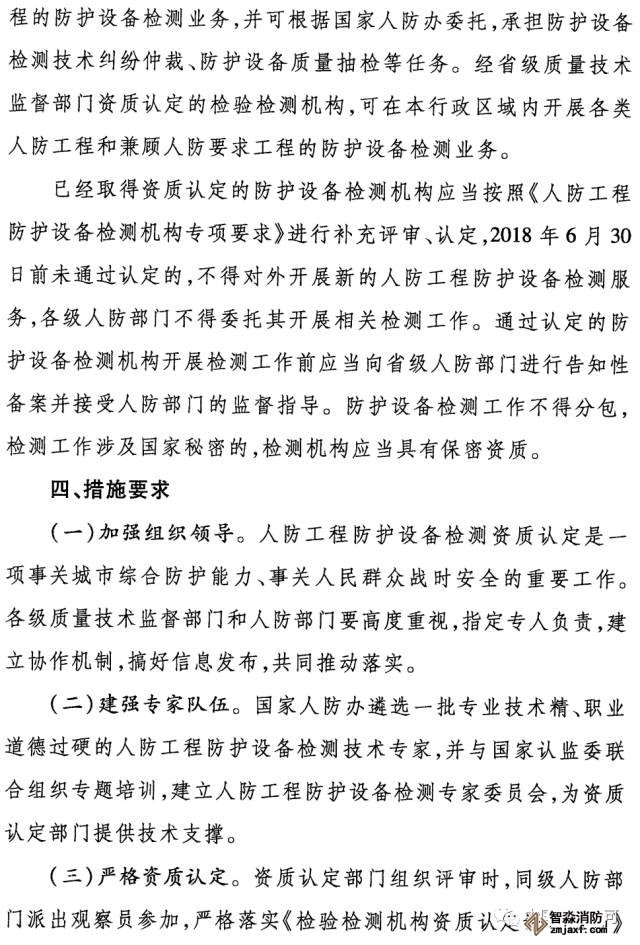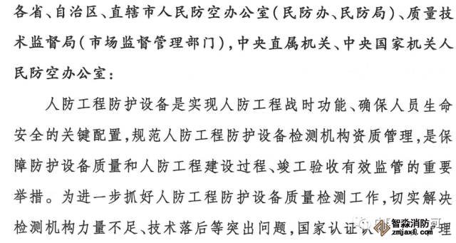 關于規范人防工程防護設備檢測機構資質認定工作的通知