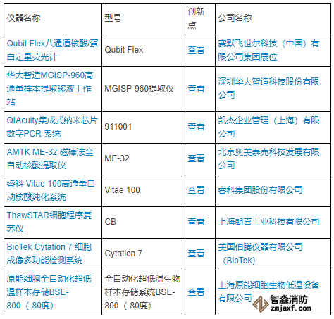 本次入圍獎名單中共有8臺生命科學領域儀器,包括華大智造高通量樣本提取移液工作站、奧美泰克全自動核酸提取儀、睿科高通量自動核酸純化系統、凱杰集成式納米芯片數字PCR、賽默飛核酸/蛋白定量熒光計、伯騰細胞成像多功能檢測系統、上海朗喜細胞程序復蘇儀、上海原能全自動化超低溫生物樣本儲存系統。