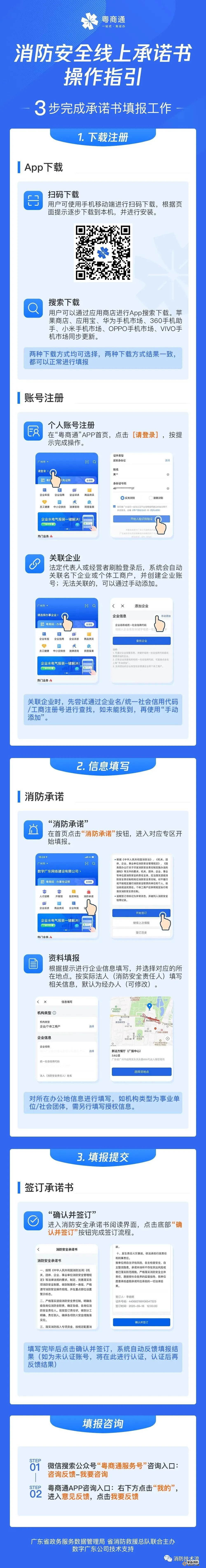 為進一步深化消防安全專項整治三年行動,貫徹落實《廣東省人民政府辦公廳關于轉發省政務服務數據管理局 省市場監管局加快推進粵商通平臺建設推廣工作方案的通知》,運用線上手段廣泛告知消防安全管理職責任務,有效提升社會監督效能,督促指導企事業單位落實消防安全主體責任和“三自主兩公開一承諾”制度,省消安委決定即日起至11月30日,利用粵商通平臺,在全省范圍內開展企事業單位消防安全線上大承諾活動。